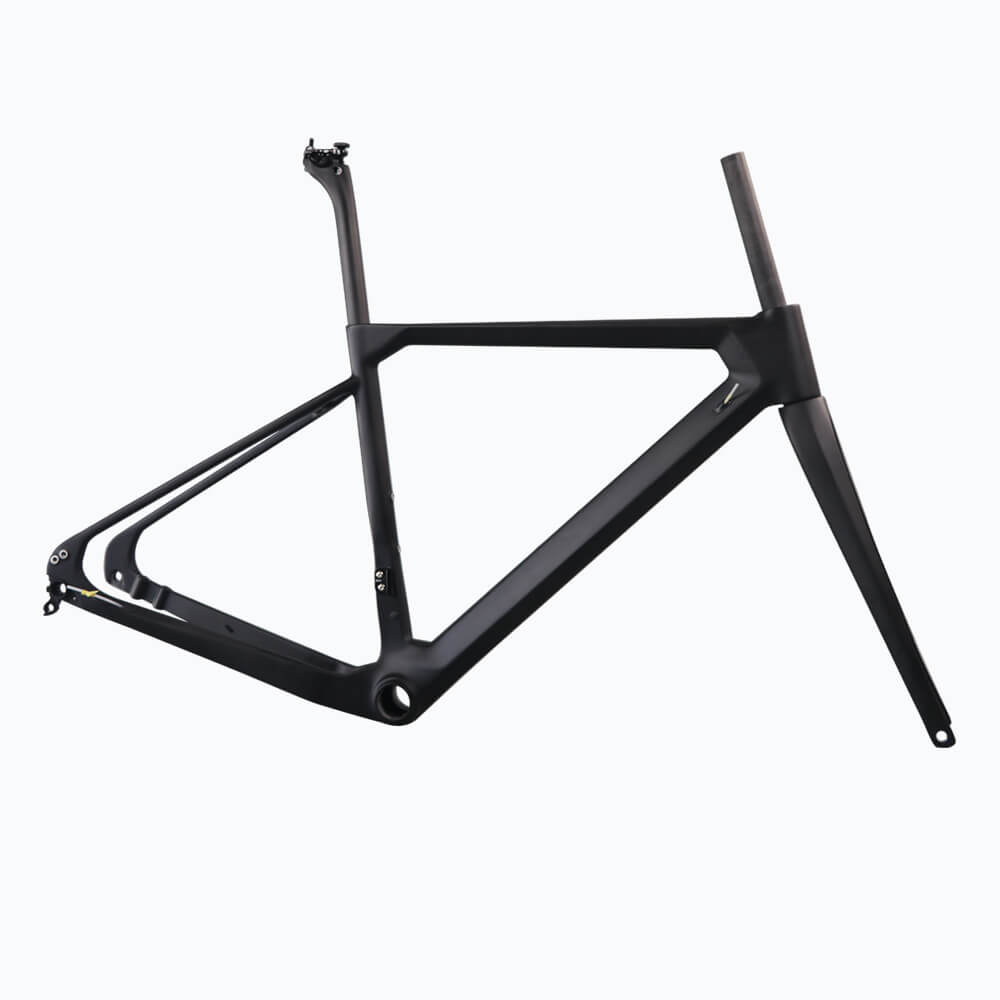The GRA02 is a full carbon mechanical frame and fork set that is made from Toray T700 carbon cloths weaved in a UD Matt finish. The use of carbon fiber as the primary raw material makes the frame lighter and therefore more efficient than its aluminum equivalents. The GRA02 is super-light weighing only 1,530g (450g for the fork and 1,080g for the frame).